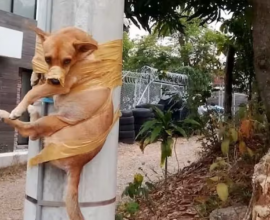 HOMBRE PEGÓ CON CINTA ADHESIVA A UN PERRITO EN POSTE DE LUZ